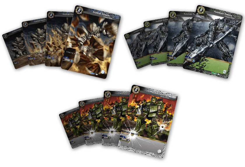 One of three kinds: white and green token cards previously released in BSS02 or earlier, and new blue tokens for BSS03.